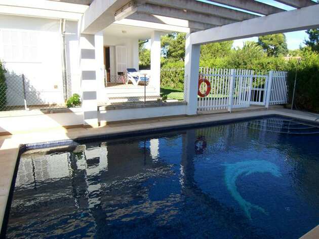 Beschreibung Wohnfläche 150m, zusätzlich Terrassen, Balkons und Garten. 4 Schlafzimmer für 2-Personsen mit Klimaanlage, ein Zimmer mit einem Bett von 135x190cm alle anderen mit 2 Betten von 90x190cm. 2 komplette Bäder. Küche mit Waschmachine, Mikrowelle, Geschirrspülmaschine etc. Wohn- Esszimmer mit Kamin und Klimaanlage, Sofas, Fernseher und Zugang zur Terrasse und Pool Pool 8x4m, komplett eingezäunt und außer Juli und August privatem Nutzrecht BBQ Zentralheizung Garage für 2 Autos und mit Abstellraum. HauptdatenRef.: 0012 HÄUSER Name: Sirenas Maximal: 8 Personen Lage: Wohngegend Grundstück: 270 m2 Wohnfläche: 150 m2 Schlafzimmer: 4 Badezimmer: 2 Umgebung: Ruhig Ort: Playa de Muro Ausgerichtet nach: Süd-Ost