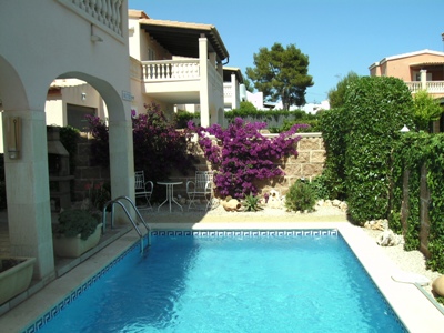 Beschreibung Das Chalet ist ein zweistöckiges Haus mit eigenem Pool, mit ca. 130 qm Wohnfläche, in ruhiger, aber dennoch angenehmen ortskernnahen Lage im Örtchen Porto Cristo Novo in einer Sackgasse unweit der drei Traumbuchen des Ortes. Nur wenige Fußminuten zu den Buchten, Geschäften, Bars und Restaurants. Im Erdgeschoß ist ein Doppel-Schlafzimmer mit Klimaanlage, Küche mit Sitzgruppe, Bad mit Dusche, Wohn-Esszimmer mit Sat-TV (40 Zoll Hochbildschirm), Waschraum mit Waschmaschine und Trockner. Im Obergeschoß sind 2 Schlafzimmer mit Doppelbett und Klimaanlage, 1 Bad en suite mit Dusche und WC und ein Bad mit Wirlpool und WC. Jedes Schlafzimmer hat eine überdachte Terrasse, zusätzlich gibt es noch eine 25 qm große überdachte Terrasse mit Möbeln. Im Außenbereich ist der abgeschlossene Garten mit Terrasse, Pool, Grill, Lieben, Stühlen und Tisch. Das Haus liegt 5 Fußminuten von der Cala Anguila entfernt, ca. 3 Fußminuten von der Cala Mandia und ca. 10 Fußminuten von der Cala Romantica. Belegung für bis zu 6 Personen. |