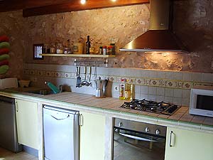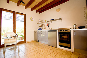 (Spülmaschine, Herd, Kühlschrank, span. Kaffeemaschine, Toaster), Sat-TV, LCD-TV, Homecinema, DVD, CD, Internetverbindung über W-Lan, Radio und Gas-Zentralheizung. Die 2 Terrassen hierzu sind bestuhlt mit Teakholzmöbeln und einer Hängematte. Es gibt eine Schattenterrasse, eine Weinlaube und eine Sonnenterrasse vor dem Haus. Casa Groc liegt allein auf einer der vier jungen Olivenplantagen. |
